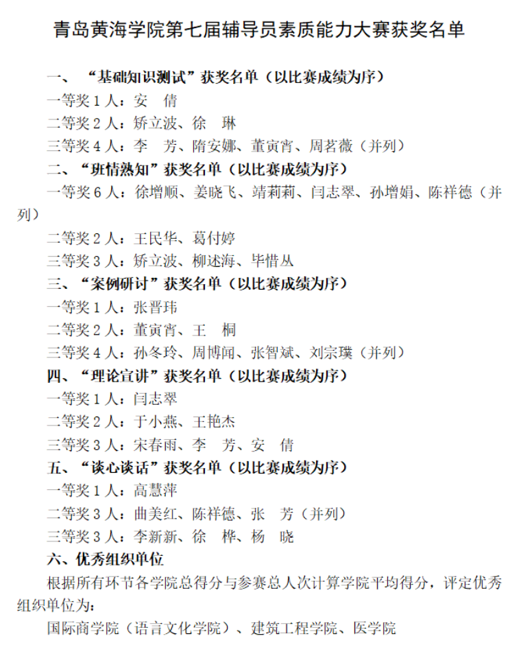 为深入学习党的二十大精神和习近平总书记关于教育的重要论述,全面贯彻全国全省教育大会、高校思想政治工作会议和学校思想政治理论课教师座谈会精神,落实《普通高等学校辅导员队伍建设规定》《高等学校辅导员职业能力标准(暂行)》等文件要求,进一步加强冰球官网辅导员队伍建设,精准赋能辅导员素质能力提升,根据《关于举办冰球突破豪华版官方网站第七届辅导员素质能力大赛的通知》青黄院学函〔2024〕6号要求,学生工作部于2024年4-6月举办冰球突破豪华版官方网站第七届辅导员素质能力大赛。