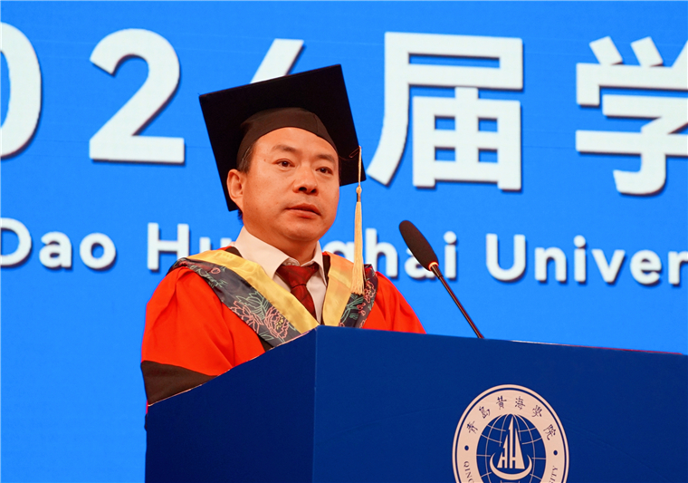 王渊明校长以《走好人生的“结合路”》为题在毕业典礼上致辞。他代表学校,向2024届全体毕业生致以热烈的祝贺!回首来时路,郁郁满芳华。同学们始终与时代同歌、与发展共进、与梦想为伴,秉承“知行合一”校训,在黄海守初心、求真知、练本领、共成长,书写了最美的黄海青春故事,共同绘就了学校近年来砥砺奋进、披荆斩棘、快速发展的绚丽画卷!临别之际,他以“走好人生的‘结合路’”为题,对同学们讲三点希望,与同学们共勉:希望你们立志践行,把仰望星空与脚踏实地结合起来。仰望星空,是一种追寻理想的姿态,而脚踏实地则是实现理想的必经之路。理想引导人生,实干成就未来。同学们既要牢固树立崇高理想、坚定信念,又要脚踏实地、艰苦创业,在未来工作生活中实现自身价值。希望你们知行合一,把理论创新与工作实践结合起来。创新是发展的动力,实践是创新的目的。理论的价值在于指导实践,创新的目的在于工作运用。同学们要自觉将创新与实践联系起来,在实践中探索创新,在创新中推动发展。希望你们以德立身,把追求新知与品德修养结合起来。才是成事之基,德是立身之本。同学们要学会终身学习、增长才干,同时也要注重锤炼品德、磨练意志。德才是辩证统一的,不可孤立分割,也不可厚此薄彼。同学们走向社会,既要不断学习、才能出众,也要政治过硬、厚德载物。王渊明校长深情寄语毕业生:在学校时,你们是黄海学子,是学校最美的风景。踏出校门,你们将变为黄海校友,成为社会最可信赖的骨干。不论你们身在何处,请记住:母校永远在牵挂和祝福着你们!灵海路1145号永远是你们的家,欢迎你们常回家看看!