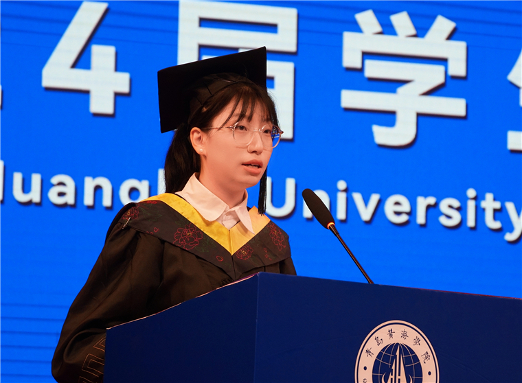 毕业生代表建筑工程学院李林璇同学发言。她代表全体2024届毕业生向精心培育他们的母校、老师以及默默支持陪伴他们的亲友,表示最衷心的感谢和最崇高的敬意。她表示,无论走得多远,“知行合一”的校训都会深深铭刻在每一个毕业生心中,激励我们在追求真理的道路上坚定前行。
