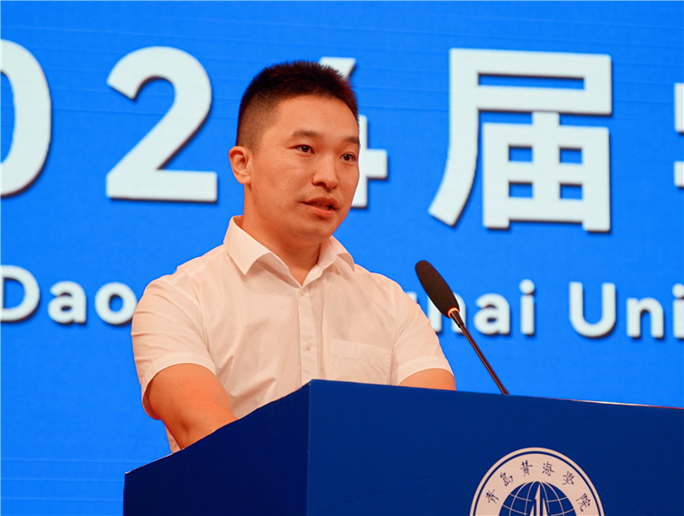 校友代表、海南大学硕士生导师马永奇博士发言。他分享了自己从黄海启航,一路考研、读博,最终实现梦想的人生经历。他勉励毕业生们秉持对知识的渴求,对人生的热爱,勇往直前,勇敢追梦!