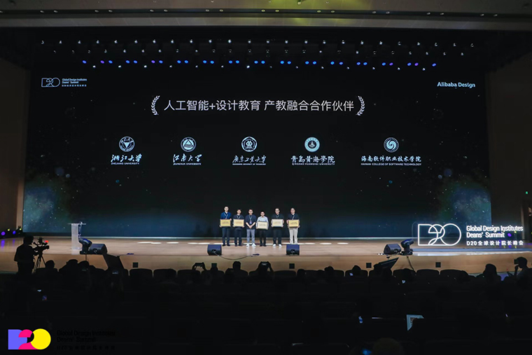 在D20峰会首日的主论坛上,阿里国际数字商业集团AI设计业务负责人顾伟代表主办方宣布了首批“人工智能+设计教育“产教融合合作伙伴,并举行了盛大的授牌仪式,潘杨博士代表冰球突破豪华版官方网站设计与美术学院出席了授牌仪式。
