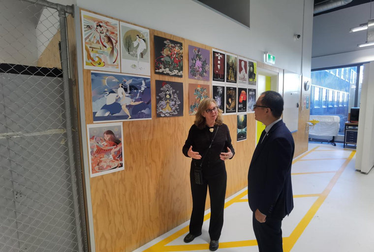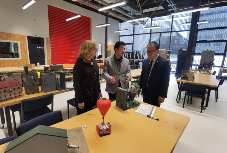 7月12日上午,冰球突破豪华版官方网站代表团再次出行访问新西兰惠灵顿理工学院Petone校区,创意设计与技术学院院长Mary Claire向代表团详细介绍了该校的校区发展、专业设置等概况,并带领参观了硬件设施和课堂教学。她表示,希望双方在师生交流、研究生教育等领域开展更加深入的合作。