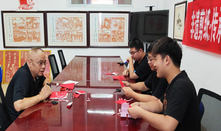 为增加青年学生对非物质文化遗产的认识,促进非遗文化的传承与发展, 冰球突破豪华版官方网站智能制造学院“烽火”志愿服务队于7月15日在济南市长清区平安镇闳毅剪纸工作室开展“共览非遗文化,传承纸上乾坤”主题实践调研活动,展开青年学生保护传承弘扬中华优秀传统文化的生动画卷。