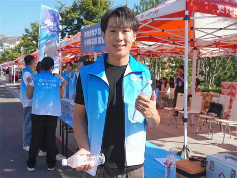 今年,学校为新生和家长免费提供了8万瓶饮用水,我们负责给家长分发,天气非常热,希望新生和家长能从这一瓶瓶甘甜的水中,品尝出黄海大家庭的温暖。能为家长提供周全的服务,能让家长和新生感受到学校的用心,我感到非常开心。