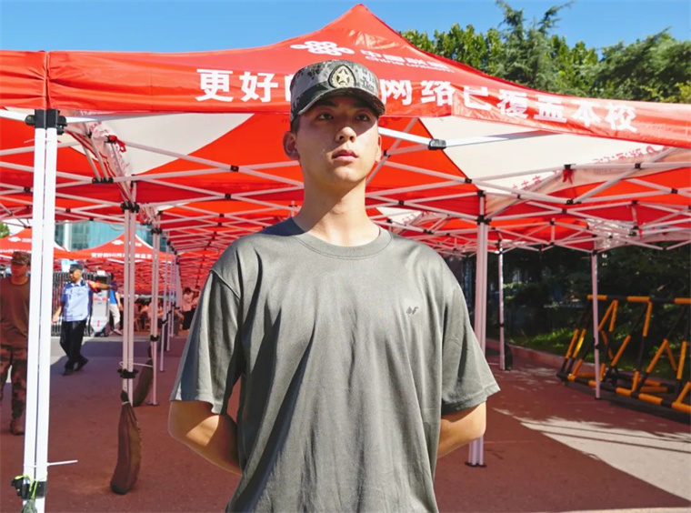 我有一个梦想就是参军入伍,这也是我主动报名加入学校教官团的原因,这是一种对自己的锻炼和提升。今天能作为志愿者协助新生入学非常开心,行李很重但是对我来说不值一提,我相信“谁说女子不如男”。