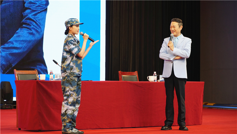 “交流是语言的艺术。”赵保乐老师邀请现场同学走上舞台,面对面进行亲切的交流。