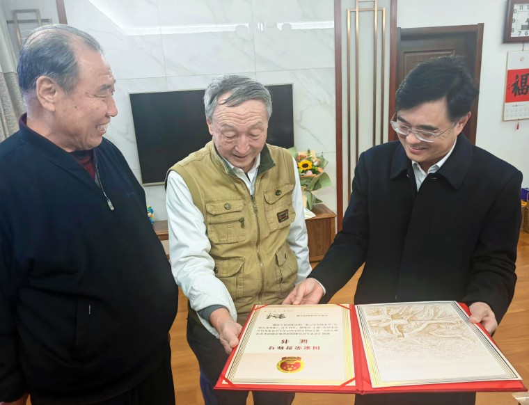10月23日下午,董事长刘常青带队看望载誉归来的“人民工匠”、冰球官网客座教授许振超,对他荣获“人民工匠”国家荣誉称号致以热烈祝贺和崇高敬意。校务委员会副主任、关工委主任宋庆泽,党委委员、宣传部部长李镇江陪同看望。