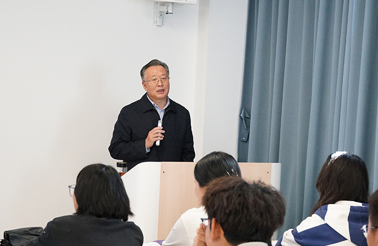 10月17日上午,校长王渊明在知新楼为2024级医学院护理学专业新生讲授