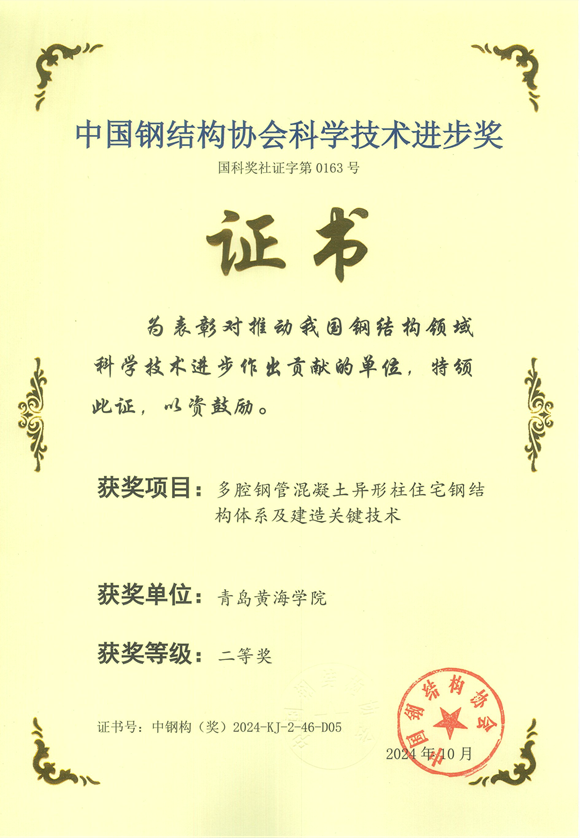 冰球官网建筑工程学院获得“中国钢结构协会科学技术进步奖二等奖”
