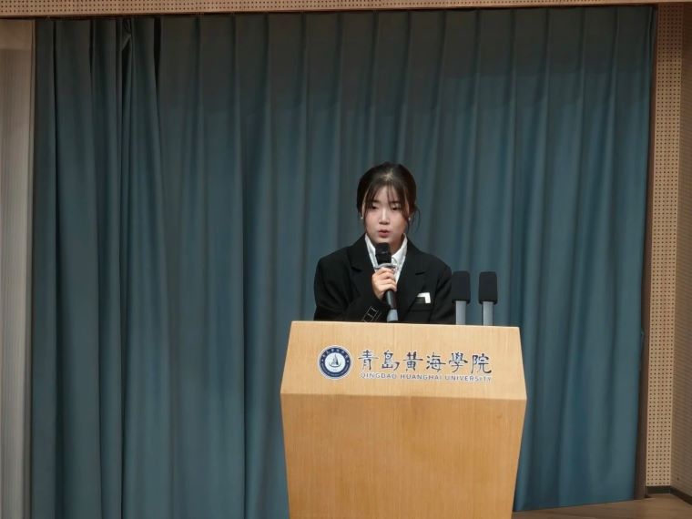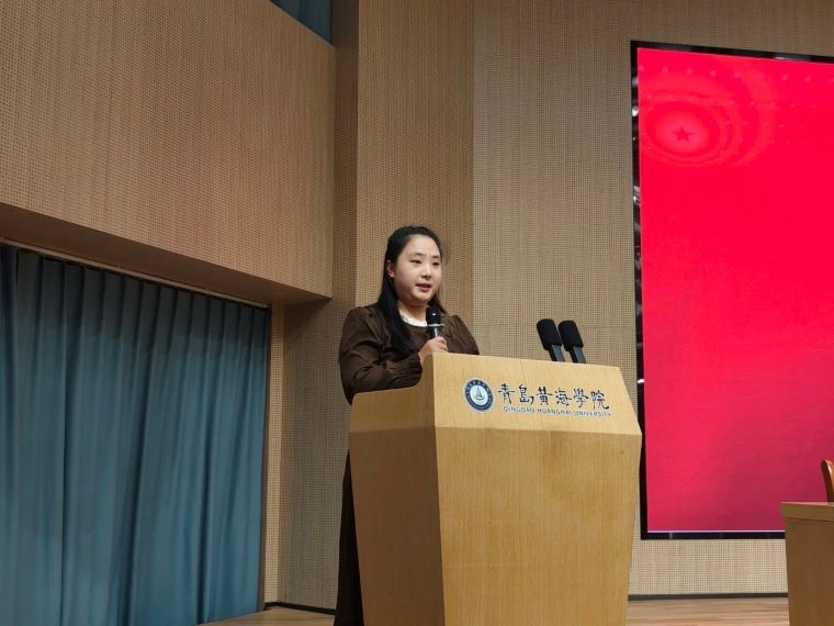 齐馨瑞代表语言文化学院全体团委学生会及综合事务中心作出承诺:牢记使命、谨记责任、团结协作、勇于创新;积极投身工作,共同营造向上向善的校园环境。