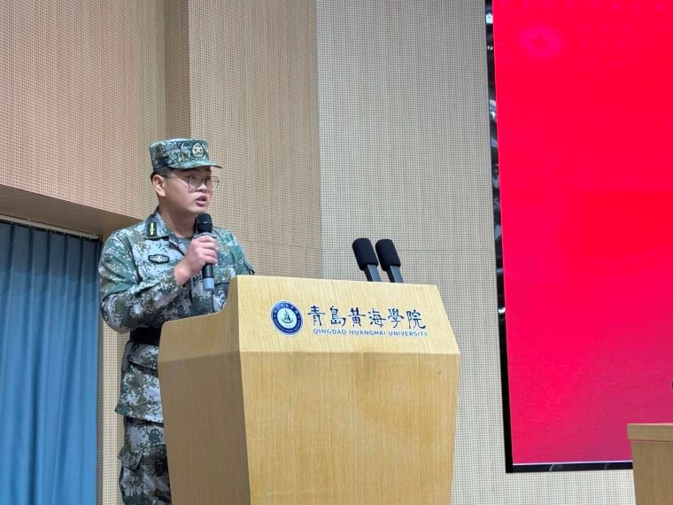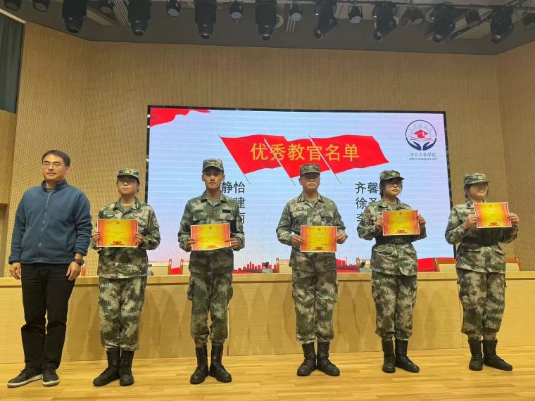 优秀教官代表周朝健发言,他代表全体教官对学院的信任表示最真挚的感谢,还向其他教官致以最真挚的敬意,并感谢每一位参与军训、勇于挑战自我的同学。他表示,期待教官团能够不断学习新知识、新技能,适应时代的发展和学生的需求,创新教学方法,坚守岗位,以身作则,用实际行动诠释教官的责任与担当。