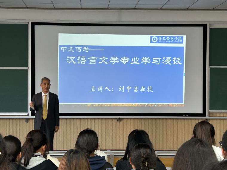 刘中富院长作题为《中文何为——汉语言文学专业学习漫谈》的讲座,结合个人学术经历和人生感悟,传授学习方法和为人处世道理,赢得新生阵阵掌声。他鼓励新生珍惜大学时光,努力学习,提升综合素质和创新能力。