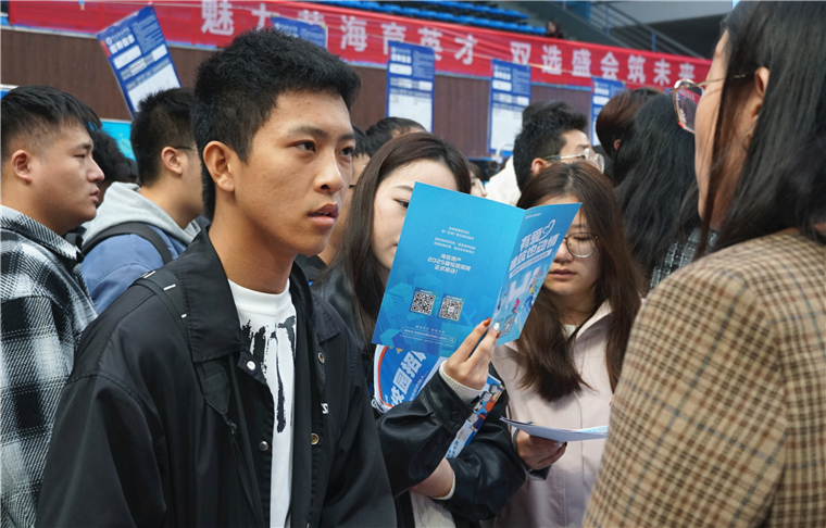 来自智能制造学院的初一鸣同学表示:“我想找一个和自己的专业船舶与海洋工程对口的工作。线下双选会可以让我近距离与对口的用人单位交流,很感谢学校提供这样好的机会。”