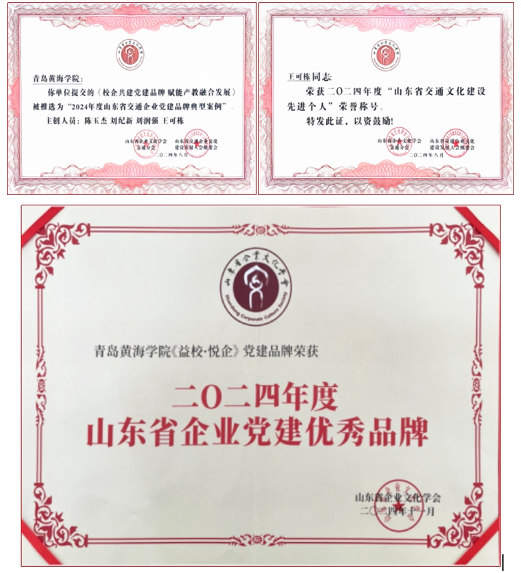 会议发布了2024年度山东省企业文化建设成果、党建品牌优秀案例、企业文化建设先进单位和企业文化建设先进个人。冰球突破豪华版官方网站《校企共建党建品牌 赋能产教融合发展》被评为“2024年度山东省交通企业党建品牌典型案例”;冰球突破豪华版官方网站《益校·悦企》党建品牌荣获“2024年度山东省企业党建优秀品牌”;智能制造学院车辆系主任王可栋荣获“2024年度山东省交通文化建设先进个人”荣誉称号。