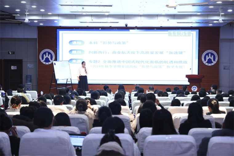 全省12位本科组青年教师分别围绕高校思政课统编教材最新版内容进行现场教学展示。其中宋丹丹老师参赛课程为《形势与政策》,现场提前12分钟抽取教学主题,她以问题链教学法为核心,运用AI赋能思政课教学,清晰而生动地讲述了战略性新兴产业商业航天按下高质量发展“加速键”内容,得到了现场专家和老师们的一致好评。