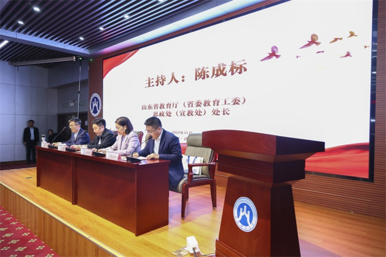 “萌新磨课总会”由山东省教育厅指导,山东省学校思政课教学指导委员会、山东省大中小学思政课一体化建设指导中心、全国高校思政课“手拉手”集体备课中心(山东师范大学—山东省)、全国高校思想政治工作创新发展中心(山东商业职业技术学院)、全国高校“思想道德与法治”教学创新中心(山东商业职业技术学院)主办,山东财经大学马克思主义学院、山东师范大学马克思主义学部承办。开幕式由山东省教育厅(省委教育工委)思政处(宣教处)处长陈成标主持。