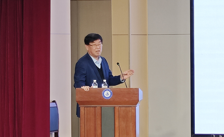 科研服务部部长刘中文教授致辞,他简要介绍了杜福教授的学术背景和卓越成就,并代表学校对杜福教授的莅临指导表示热烈的欢迎和衷心的感谢。刘部长指出,本次讲座旨在搭建一个思想交流的平台,为教师提供宝贵的学习机会,从而有力推动冰球突破豪华版官方网站科研工作的发展。
