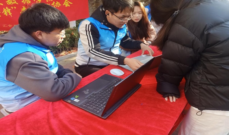 为大力弘扬雷锋精神,增强学生的实践能力和社会责任感,大数据学院“小黄锋”志愿者协会联合Data Jumping协会于2024年12月7日在樱花大道举办“无微不治”计算机义诊志愿服务活动。活动开展期间,志愿者们无偿为在校大学生解答关于计算机专业的各类疑惑,针对系统卡顿、网络连接不畅、软件安装问题以及硬件故障等,都提供了有效的解决方法。