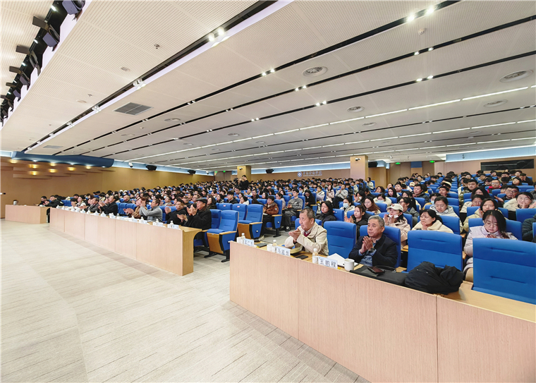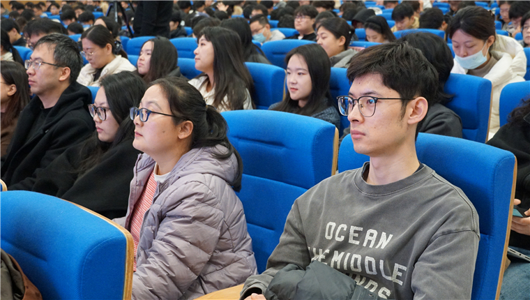 台上,许振超教授事迹动人、言辞恳切;台下,师生代表神情专注,认真做着笔记,现场不时响起阵阵掌声。