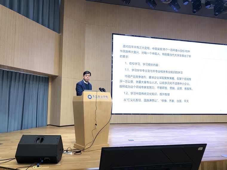 活动伊始,梁忠环副校长、王志宪院长分别致辞,他们对与会嘉宾和师生的到来表示热烈欢迎。其中特别感谢青岛跨境电商协会对本次活动的鼎力支持。青岛跨境电商协会作为行业的引领者和推动者,其专业的指导、丰富的资源以及前瞻性的视野,为本次儒商讲堂的成功举办注入了强大的动力。