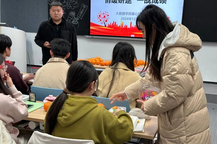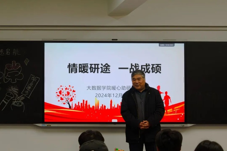 为帮助大数据学院2025届考研学子坚定备考信心、缓解备考压力,12月18日,大数据学院院长郑永果、副院长孙守强、院长助理李宗锋及全体辅导员在知新楼107教室开展“情暖研途,一战成硕”温暖同行活动,慰问考研学生,并为备考学子送去精心准备的考研加油包,全面助力考研学子“研”路生花。