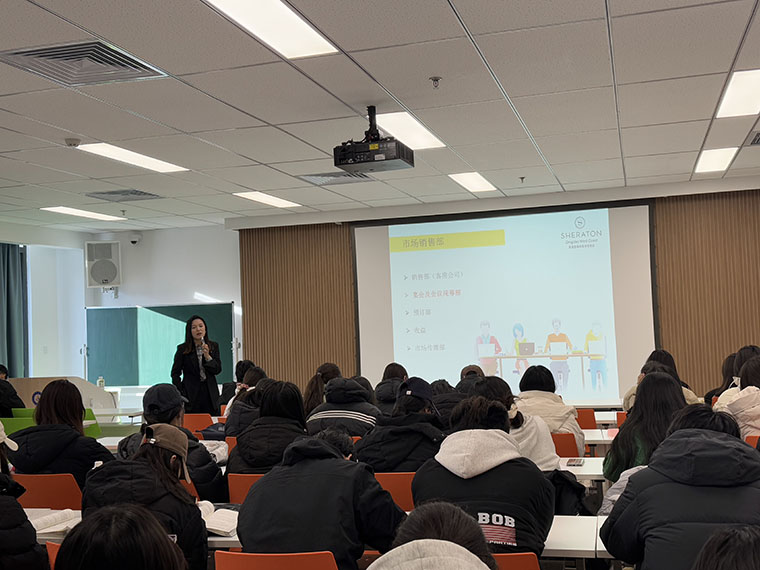 活动伊始,青岛西海岸喜来登酒店市场销售总监刑盈盈为学生们详细介绍了酒店市场的现状与未来发展趋势。通过生动的案例分析和数据展示,学生们不仅了解了酒店市场的竞争格局,还深刻认识到销售部门在酒店运营中的关键作用。刑总监还分享了如何通过市场调研、客户分析和产品定位等策略,提升酒店的竞争力和市场份额。
