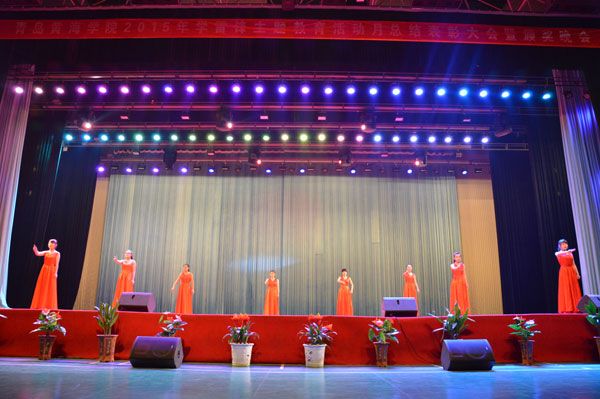 学雷锋活动月总结表彰暨颁奖晚会在悠扬的民乐合奏《学习雷锋好榜样》中拉开帷幕。团委书记张艳宣读了《关于表彰“代言核心价值观 争创雷锋十百千”主题教育月活动先进集体和先进个人的决定》,并举行了对受表彰集体和个人的颁奖仪式。学生处副处长孙兆忠对学雷锋主题教育活动月作总结讲话。他代表学校向出席大会的黄岛区西区关工委的领导表示热烈的欢迎,向受到表彰的集体和个人表示衷心的祝贺!向辛勤培育学生健康成长的老师们表示诚挚的感谢! 他希望广大同学能加强自身道德修养,把雷锋精神主题教育活动中养成的好习惯、好作风长久保持下去,做一个让家长放心,让老师满意,让学校自豪的黄海学子,为创建“九个校园”目标的实现,为学校人才培养质量的提升,为百年“黄海梦”的实现做出新的、更大的贡献。