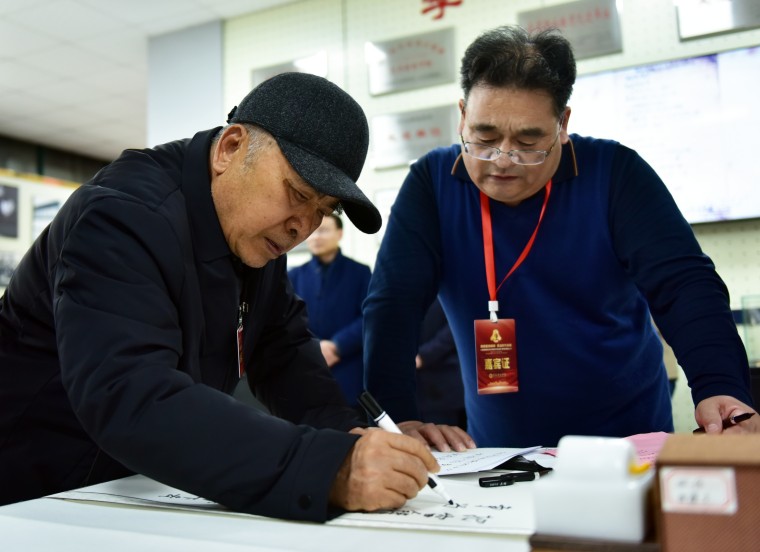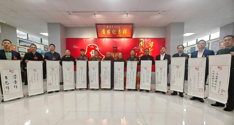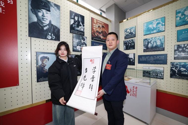 题写完成后,班长们在卷轴上郑重落款盖章,然后庄严地将卷轴转交给学生代表。这一交接仪式,不仅象征着雷锋精神从雷锋班长手中传递到了年轻一代,也昭示着雷锋精神将永远保持鲜活与年轻。