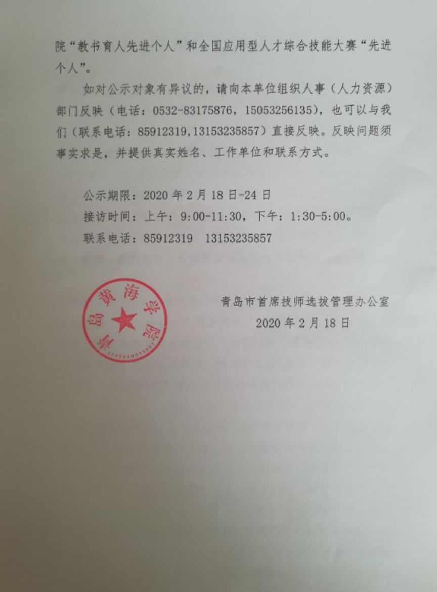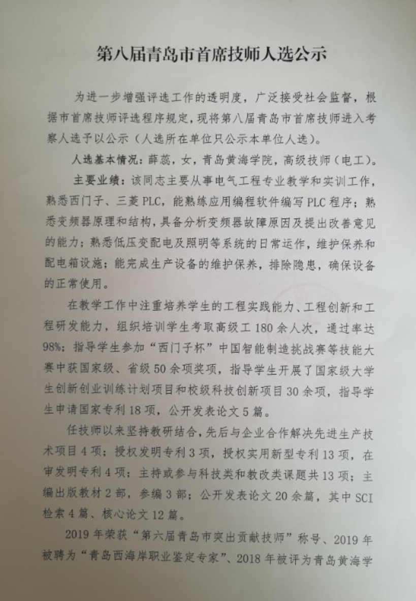 第八届青岛市首席技师人选公示