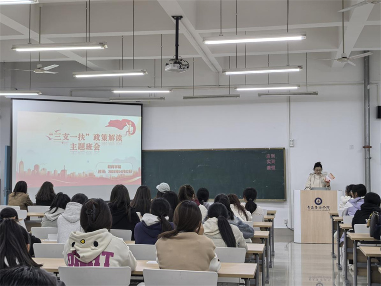 为积极响应国家鼓励高校毕业生投身基层、服务乡村振兴的号召,引导学生树立正确的就业观与价值观,4月3日,教育学院各班辅导员组织开展了 “三支一扶” 政策讲解主题班会,为同学们详细介绍 “三支一扶” 计划的相关政策内容,助力毕业生拓宽就业渠道,明确职业方向。