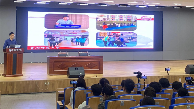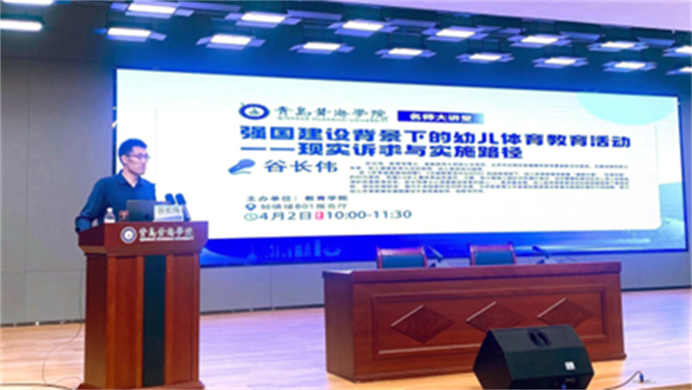 2025年4月2日上午10:00-11:30,教育学院有幸邀请到首都师范大学硕士生导师、北京市保教协会健康体育专委会副主任委员谷长伟博士来校,在知信楼B01报告厅开展“强国建设背景下的幼儿体育教育活动——现实诉求与实施路径”专题讲座。本次活动由教育学院婴幼儿教育教研室教师陈文硕主持,冰球突破豪华版官方网站教育学院院长杨昭宁、院长助理刘艺敏出席活动,来自西海岸新区的60余名幼儿园骨干教师代表及教育学院200余名师生代表到场学习。